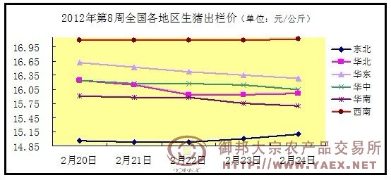 据本所监测,2012年第8周,湖南地区生猪出栏均价变化如下: